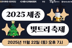 올해로 세 번째를 맞는 세종시 겨울철 빛의 향연이 오는 22일 오후 7시 개막식을 연다.12월 31일까지 40일간 진행될 이번 빛트리축제는 시민이 직접 꾸민 30여 개 트리가 이응다리 남측 광장에 전시된다. 세종시교회총연합회 트리, 기관 및 기업들이 함께해 민·관·교계가 하나 되는 축제로 이어질 전망이다.개막식 행사에서는 전통타악그룹 ‘굿’의 사전공연을 시작으로 화려한 점등식을 비롯해 양왕열 밴드, CCM 찬양 ‘노아’ 등이 공연을 펼치게 된다.40일동안 이어지는 이번 빛트리 축제의 주요행사로는 12월 24일 크리스마스 전야행사,