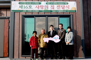 (사)보령선한이웃(대표 박세영)이 13일 원산도에서 지역 내 주거취약 가정을 위한 제16호 ‘사랑의 집’ 전달식을 개최했다.이번 전달식에는 김동일 보령시장, 최은순 보령시의회 의장, 박세영 선한이웃 대표를 비롯해 자원봉사자, 후원자, 마을 주민 등 100여 명이 참석해 따뜻한 나눔의 의미를 함께했다. 행사는 경과보고를 시작으로 축사, 명패 제막, 열쇠 전달, 가족 인사 순으로 진행됐다.새롭게 완공된 제16호 사랑의 집은 연면적 56㎡(약 17평) 규모로, 총사업비 1억여 원이 투입돼 쾌적하고 안전한 주거공간으로 조성됐다.박세영 선한