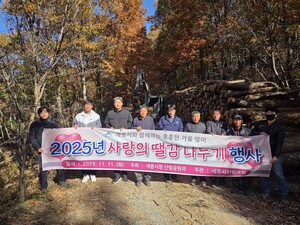 세종시가 전동면 동림산 산림욕장 일원에서 관내 취약계층 39세대를 대상으로 ‘2025년 사랑의 땔감 나눔 행사’를 열었다고 13일 밝혔다.11일 진행된 이번 행사는 겨울철 난방비 부담으로 어려움을 겪는 주민의 따뜻한 겨울나기를 돕기 위해 세종시산림조합과 공동으로 추진했다.행사에서는 2025년 숲가꾸기 사업에서 발생한 부산물을 활용해 100t의 땔감을 독거노인 등 난방 취약가구 39세대에 지원했다.이번 나눔은 저소득 가구의 난방비 부담을 덜고 숲가꾸기 추진 과정에서의 부산물을 재활용하면서 산림자원의 선순환 효과를 발생시켜 매년 추진하