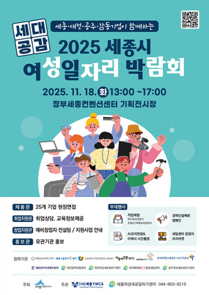 오는 18일 정부세종컨벤션센터 기획전시장에서 ‘세종시 여성일자리 박람회’가 열린다.시가 주최하고 세종여성새로일하기센터가 주관하는 이번 박람회는 여성의 취·창업 동기를 부여하고, 능력있는 여성 인재와 기업을 연결하기 위해 마련됐다.박람회에는 세종과 대전, 충남 공주 소재 25곳 기업의 현장채용관을 운영하고, 창업상담관과 구직상담관, 유관기관 홍보관, 창업자 프리마켓을 운영한다.특히 관내 일자리 유관기관 외에도 대전광역새일센터와 대전배재대ICT새일센터, 공주새일센터가 함께 다채로운 채용 연계 사업을 안내할 예정이다.이와 함께 3차원식품