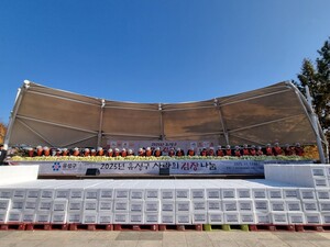 대전 유성구는 12일 유림공원에서 지역사회 나눔문화 확산을 위한 제19회 ‘사랑의 김장 나누기’ 행사를 개최했다.이번 행사는 유성구행복네트워크(상임대표 손영혜), 유성구지역사회보장협의체(위원장 황인정), 유성구행복누리재단(이사장 강도묵) 등 3개 기관이 공동 주관하고 38개 업체·기관이 후원해 마련됐다. 행사에는 관련 단체와 자원봉사자 등 300여 명이 참여했다.참가자들은 이날 2만 6640kg(약 27t)의 김장을 마쳤다. 김장김치는 동 행정복지센터·사회복지시설 등을 통해 관내 취약계층 2664가구에 전달될 예정이다.이날 행사에서