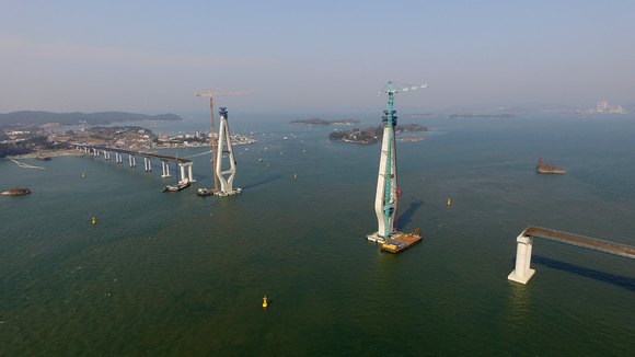 공정률 56%를 보이고 있는 해상교량은 주탑 2개와 교각 19개 위에 얹혀 해수면 30m 높이에 설치되고 있다. 지역적 특색을 살려 만든 주탑의 높이는 105m이며, 주탑 간 거리는 240m에 달한다.