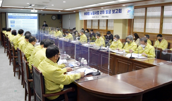 충남 부여군은 지난 4일 군청 서동브리핑실에서 박정현 부여군수를 비롯한 전 부서장과 주무팀장이 참석한 가운데 부여형 뉴딜사업 2차 발굴 보고회를 개최했다.