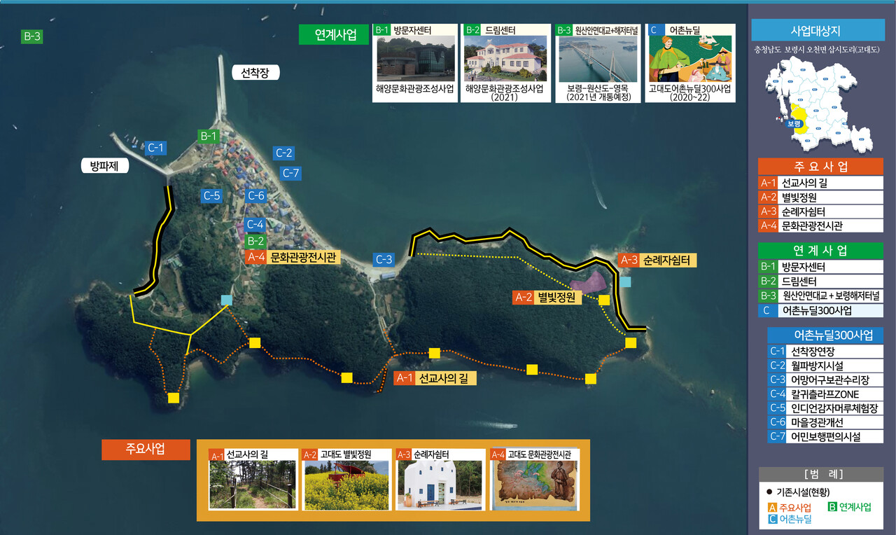 보령시는 28일 국내 최초의 개신교 선교 순례 역사를 지닌 고대도를 오는 2023년까지 선교를 테마로 한 해양관광문화 특화섬 ‘미션아일랜드’로 조성할 계획이라고 밝혔다.