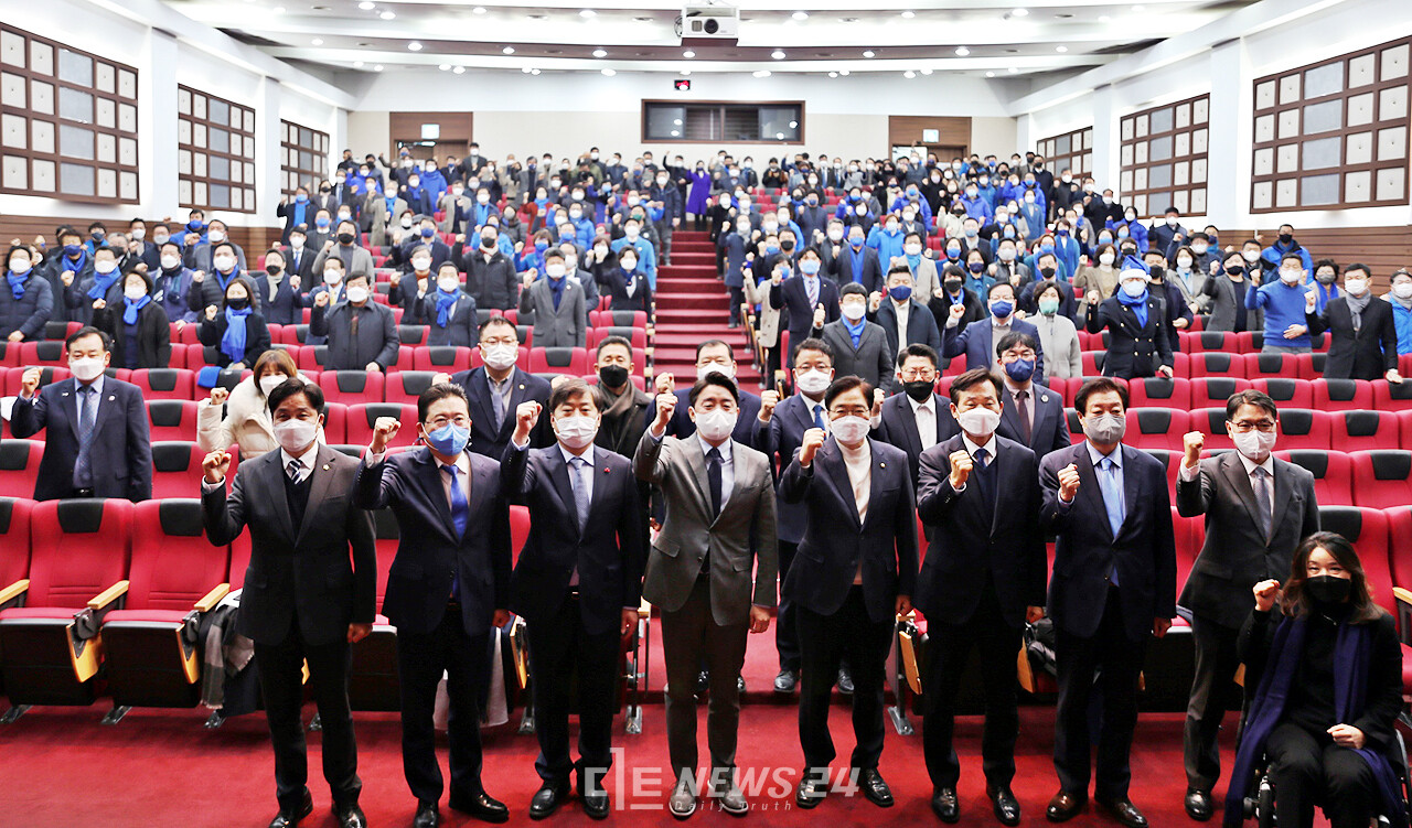 또 충남도지사 출마를 밝힌 황명선 전 논산시장, 천안시장 출마 예정인 이규희 전 국회의원과 장기수 충남선대위 종합상황실장, 김영수 전 충남도비서실장, 아산시장 출마를 밝힌 황재만 아산시의장 등 출마 예정자 200여 명이 참석했다.
