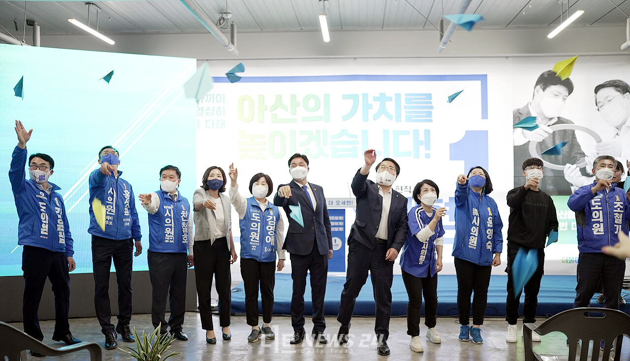 이날 개소식에 참석한 민주당 후보들은 다 함께 희망의 종이비행기를 날리며 “원팀으로 하나 돼 아산시민의 행복을 위한 깨끗한 정책선거를 치르겠다”고 결의했다.