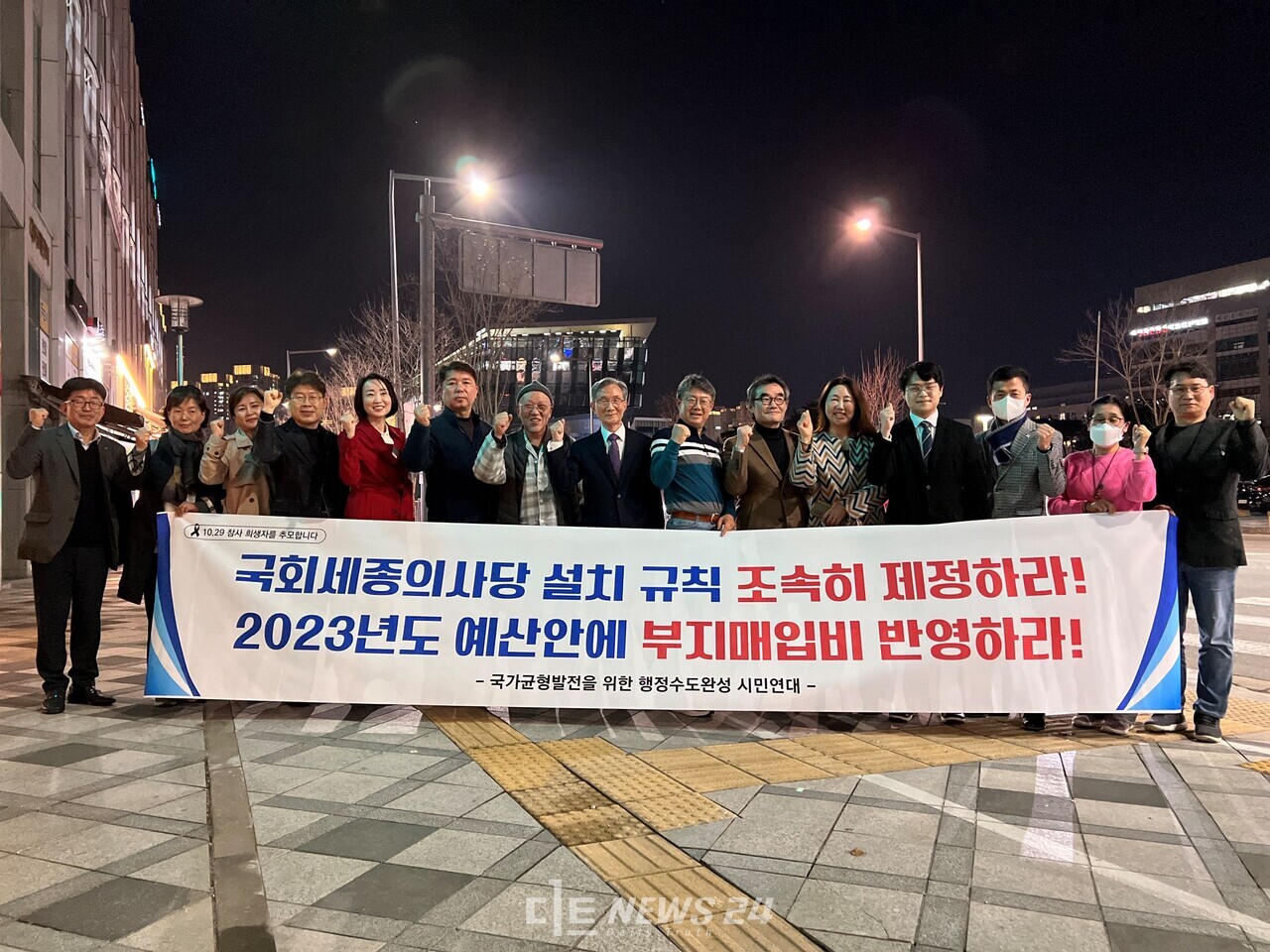 이에 앞선 17일 세종의사당 설치에 관한 국회 규칙 연내 제정과 2023년 정부 예산안에 부지매입비 및 설계비 대폭 반영을 요구하는 퍼포먼스를 갖기도 했다.