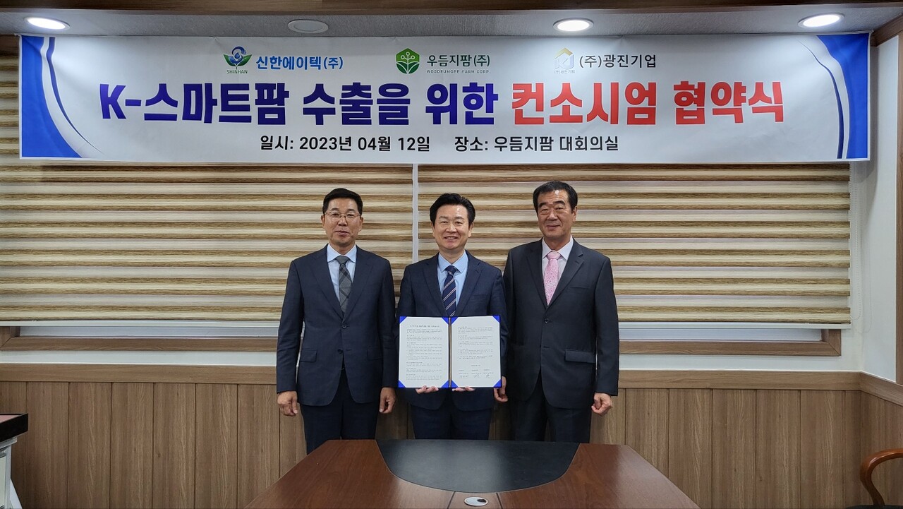 [부여=디트뉴스 김다소미 기자] 독보적인 스마트팜 기술을 보유한 우듬지팜(대표 강성민)이 스마트팜 시공 설치 기업들과 3자 컨소시엄 협약을 맺고 본격적인 해외 수출에 나선다.