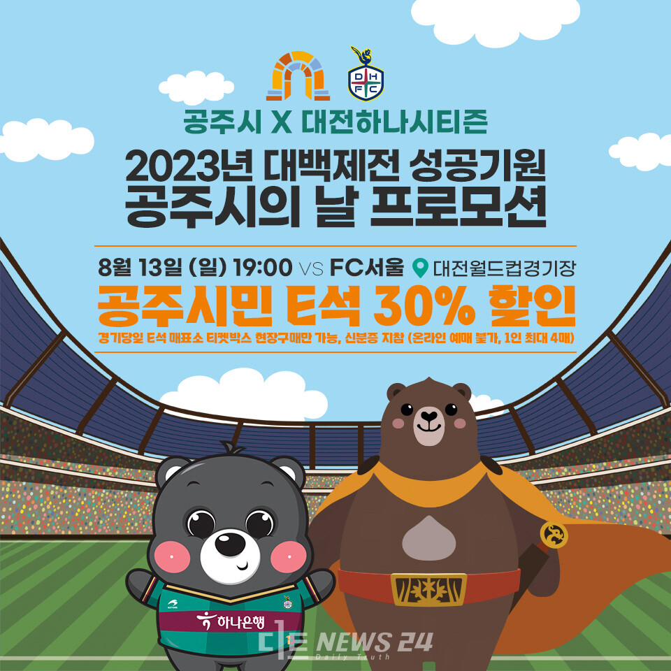 이날 FC 서울과 맞대결을 앞두고 있는데, 공주시는 오후 4시부터 경기장 남문 광장에서 다양한 홍보 부스를 운영한다.