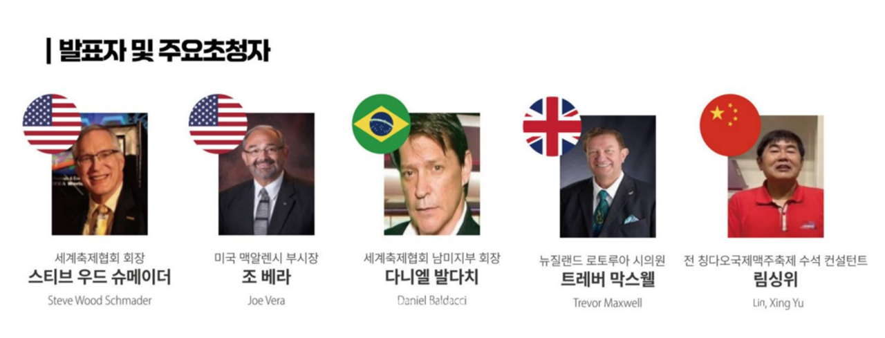 세계축제협회 스티븐우드슈메이더(Steve Wood Schmader) 회장과 미국 맥알렌시 조베라(Joe Vera) 부시장, 세계축제협회 남미지부 다니엘 발다치(Daniel Baldacci) 회장, 뉴질랜드 로토루아시트레버막스웰(Trevor Maxwell) 시의원, 전 칭다오국제맥주축제 림싱위(Lin, Xing Yu) 수석 컨설턴트도 이번 행사에 참석한다.