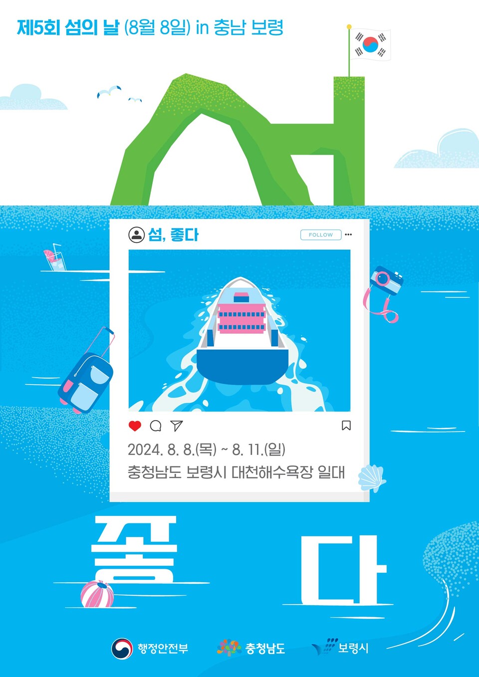‘섬의 날’은 섬의 가치와 중요성을 널리 알리기 위해 2019년 지정된법정기념일로, 올해는 원산도, 삽시도 등 70여 개의 아름다운 섬을 가진 보령시에서 오는 11일까지 나흘간 열린다.