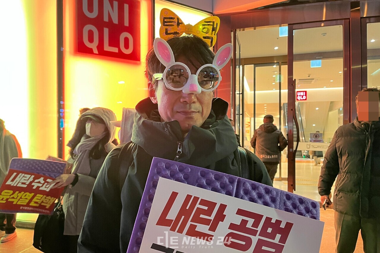 눈에 봬는 게 탄핵밖에 없어 탄핵이라는 문구를 적은 안경을 만들었습니다. 지금 바로 탄핵이 되기를 바라는 마음입니다. 시민이 추운 길바닥에서 탄핵을 외치는데, 들은 척도 하지 않는 국민의힘과 윤석열이 바로 반국가 세력입니다. 바로 처단해야 합니다. 이번주 토요일은 국회로 올라가 힘을 보탤 예정인데, 이번엔 가결될 거라고 생각합니다. 국민들이 말그대로 끝장보겠다는 생각으로 죽을 각오로 맞설 것입니다.