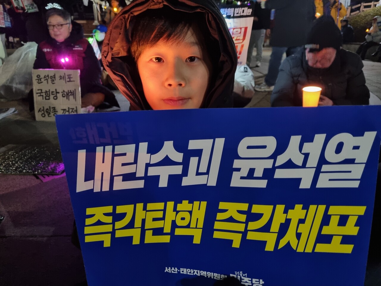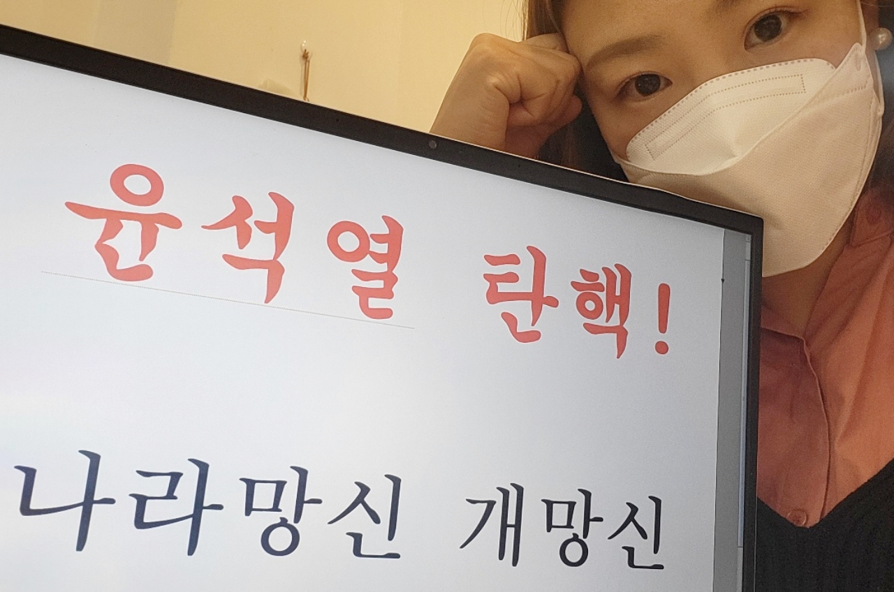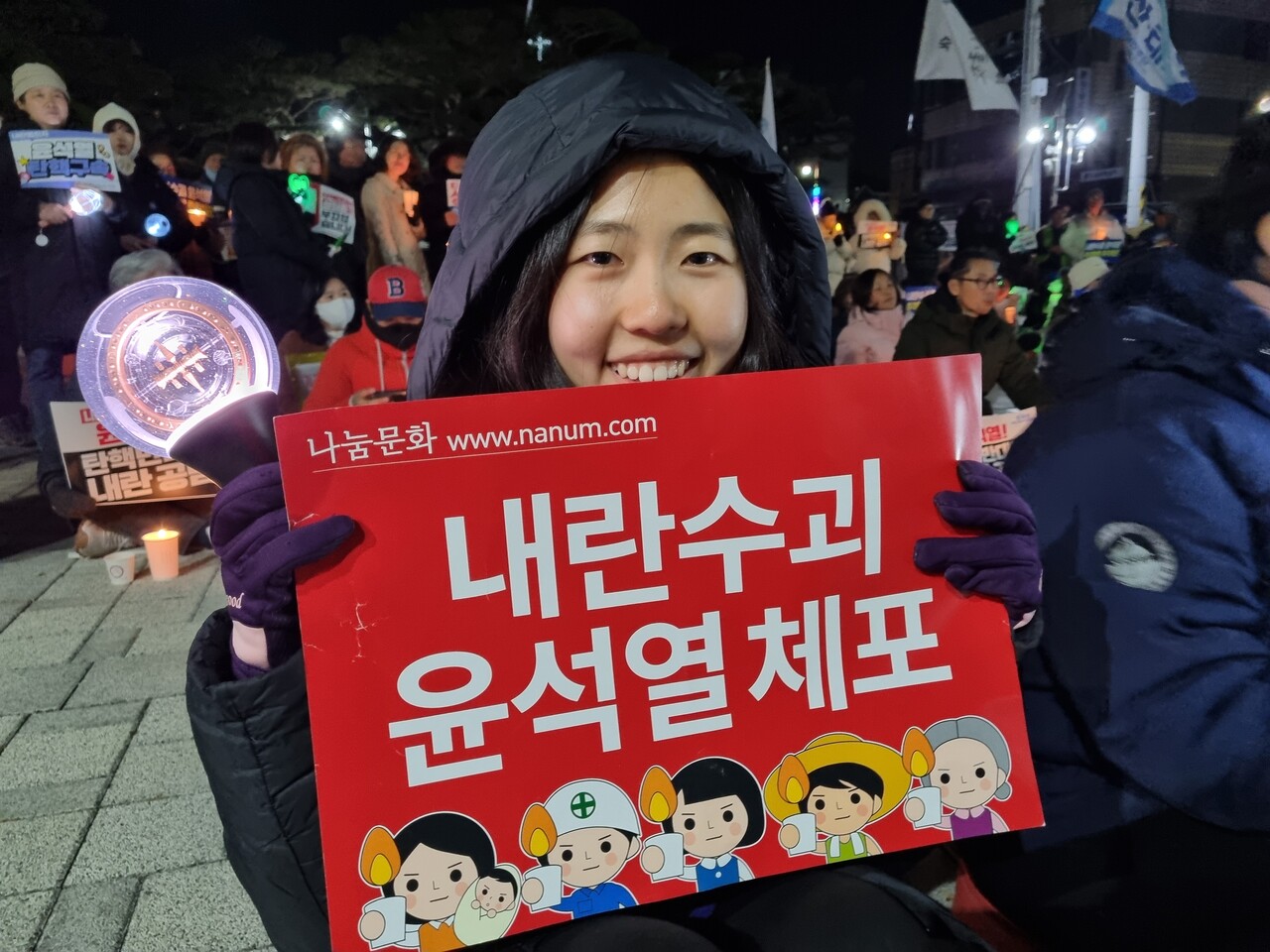윤석열은 탄핵이 아니라 처형해야 할 대상이다. 이번주 토요일에 탄핵소추안이 또 있는데 그때는 제발 우리 시민들의 목소리를 저버리지 않고 제대로 된 투표를 해주기를 바라는 마음에서 오늘 이틀째 집회에 나오게 됐다
