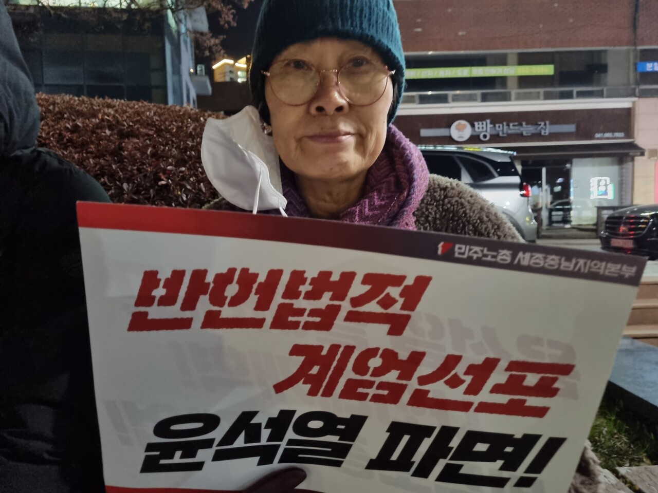 우리가 대한민국의 민주화를 위해 얼마나 많은 희생을 했는데 어떻게 2024년에 이런 일이 일어날 수 있는지 절망했다. 하지만 영하의 날씨에도 집회 현장에 이렇게 많은 어린아이부터 젊은이들이 함께 해줘 더 큰 희망을 보게 됐다