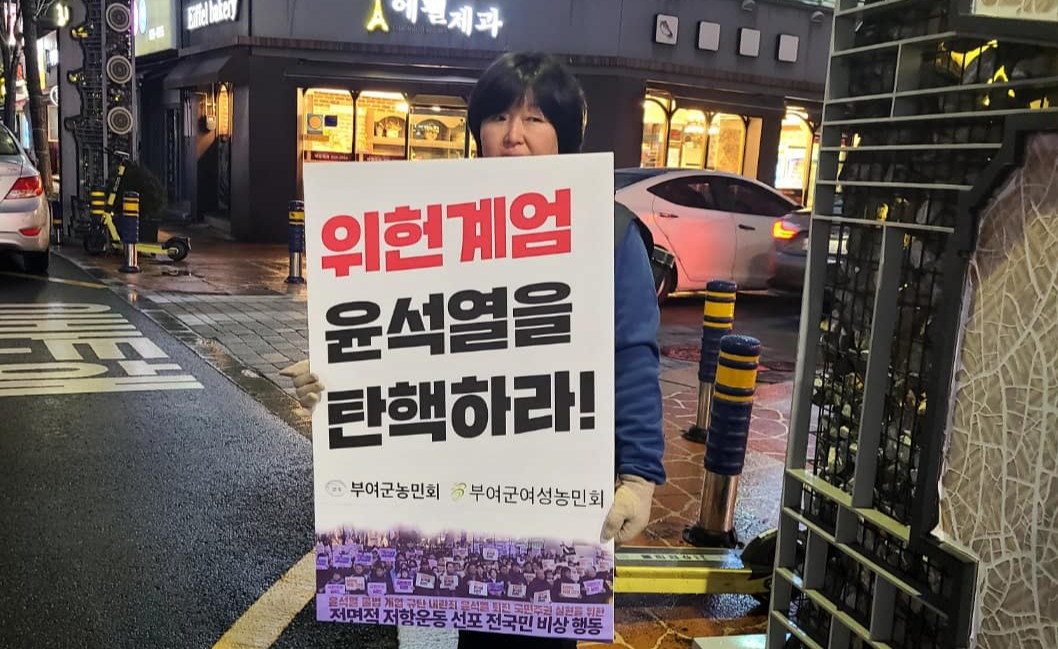 농사짓는 여성농민도 탄핵을 원합니다. 윤석열 정부 내내 농민을 무시하고 농업도 나몰라라 하며 쌀값 폭락 대책을 내놓지도 않고 있다가 계엄을 하는 대통령은 당장 내려와야 합니다"