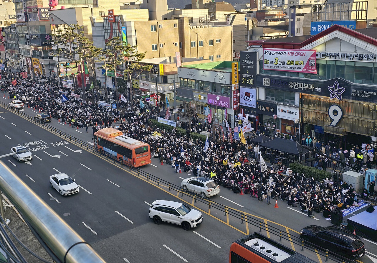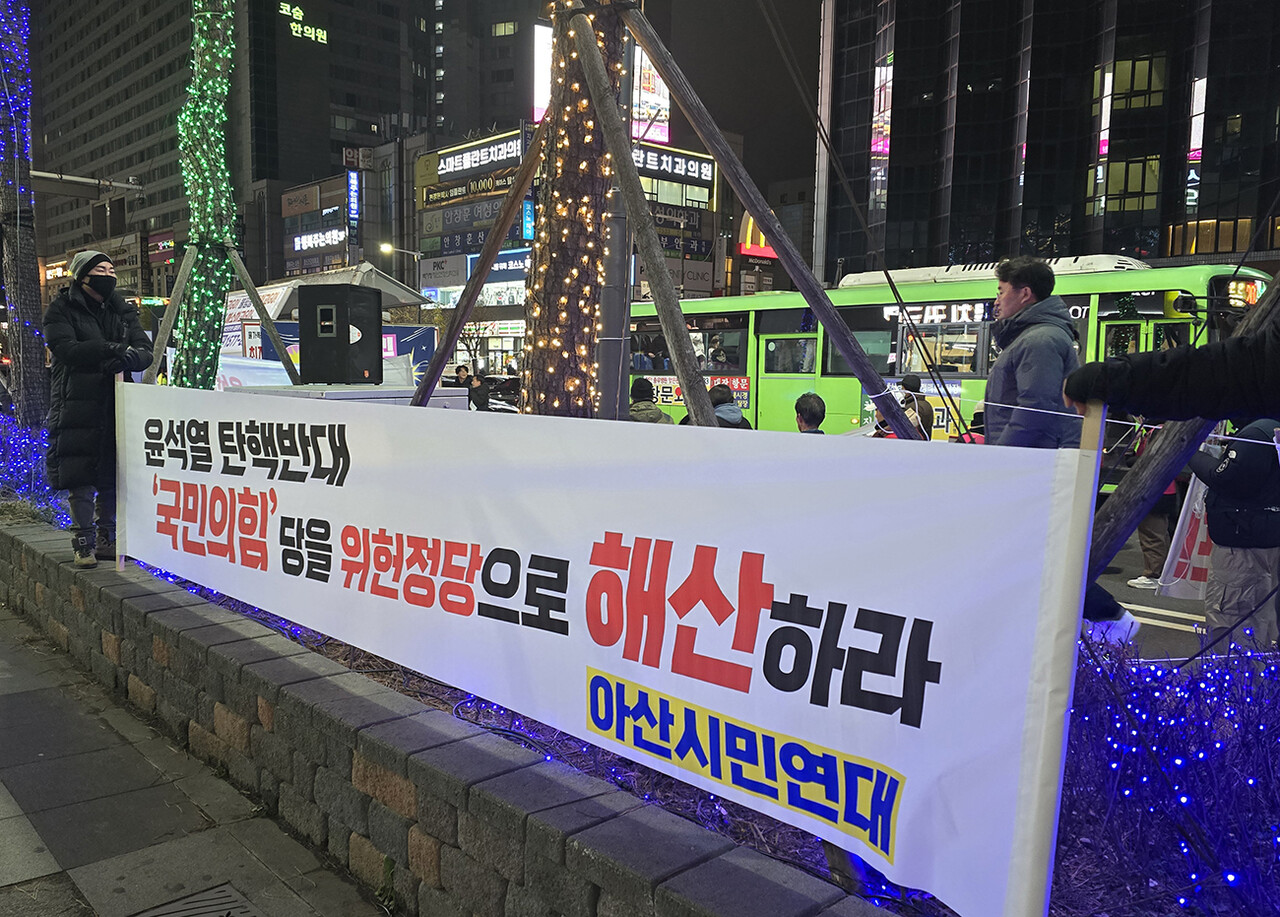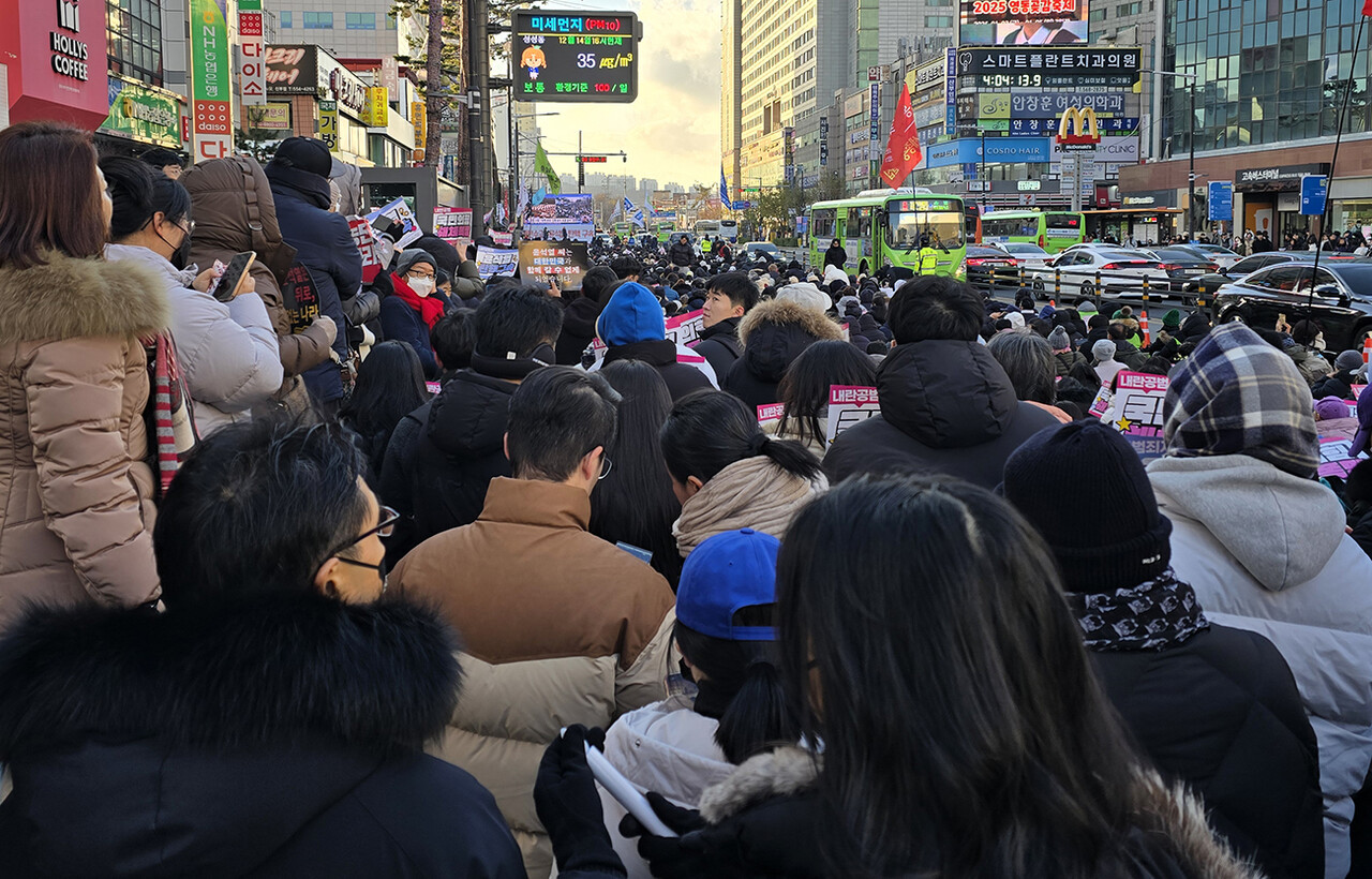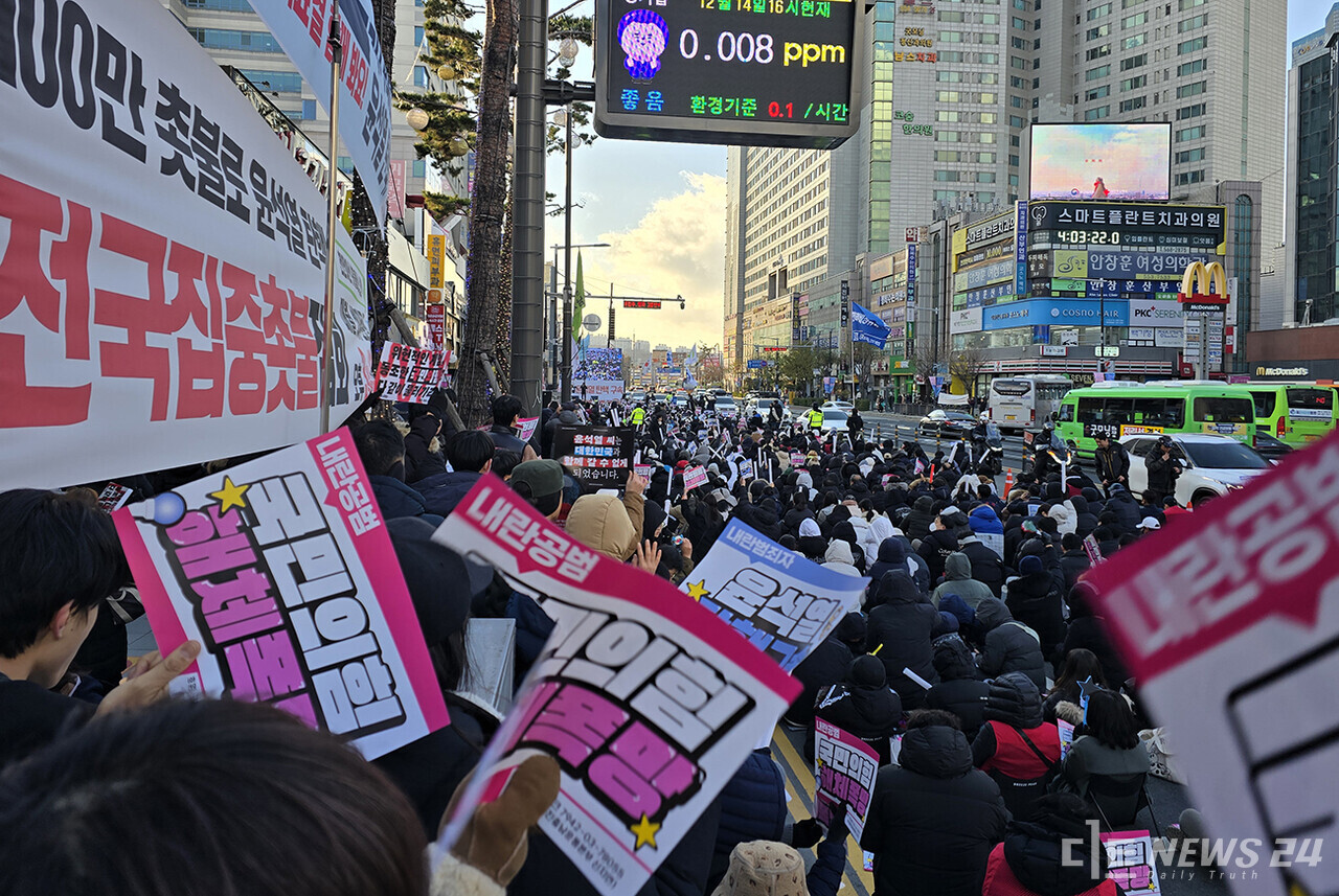 14일 영하권의 추운 날씨 속에 천안시 신부동 소재 시외버스터미널 맞은편에는 윤석열 대통령의 탄핵을 부르짖는 1000여 명의 시민들이 거리를 가득 메웠다.