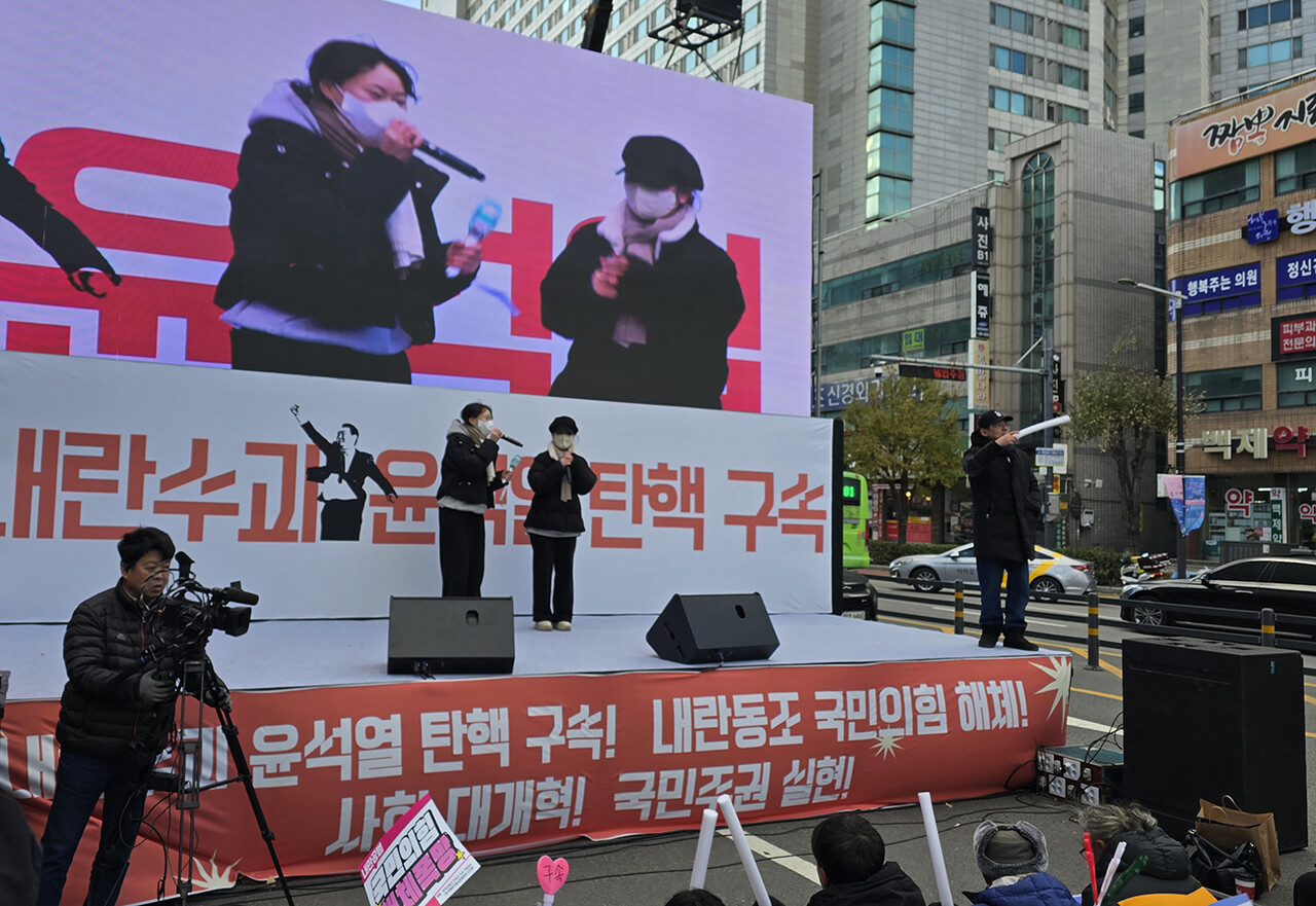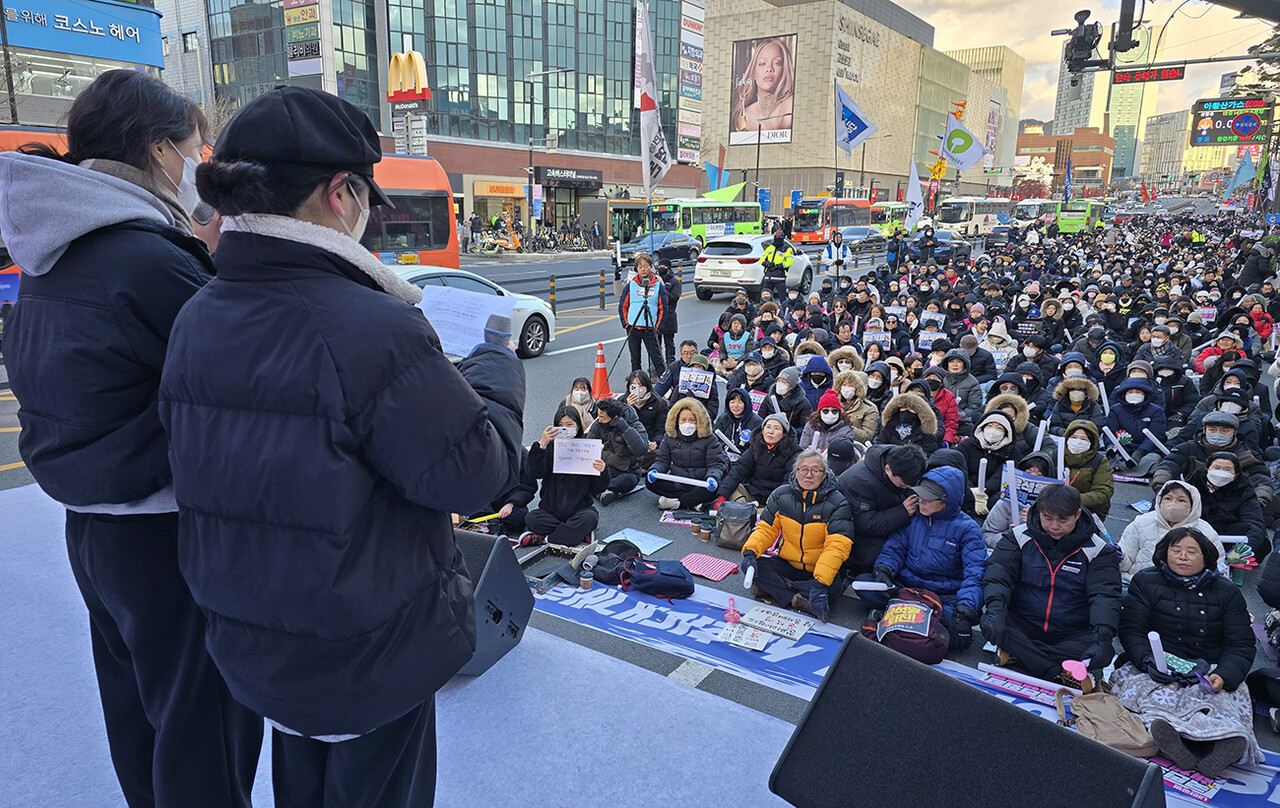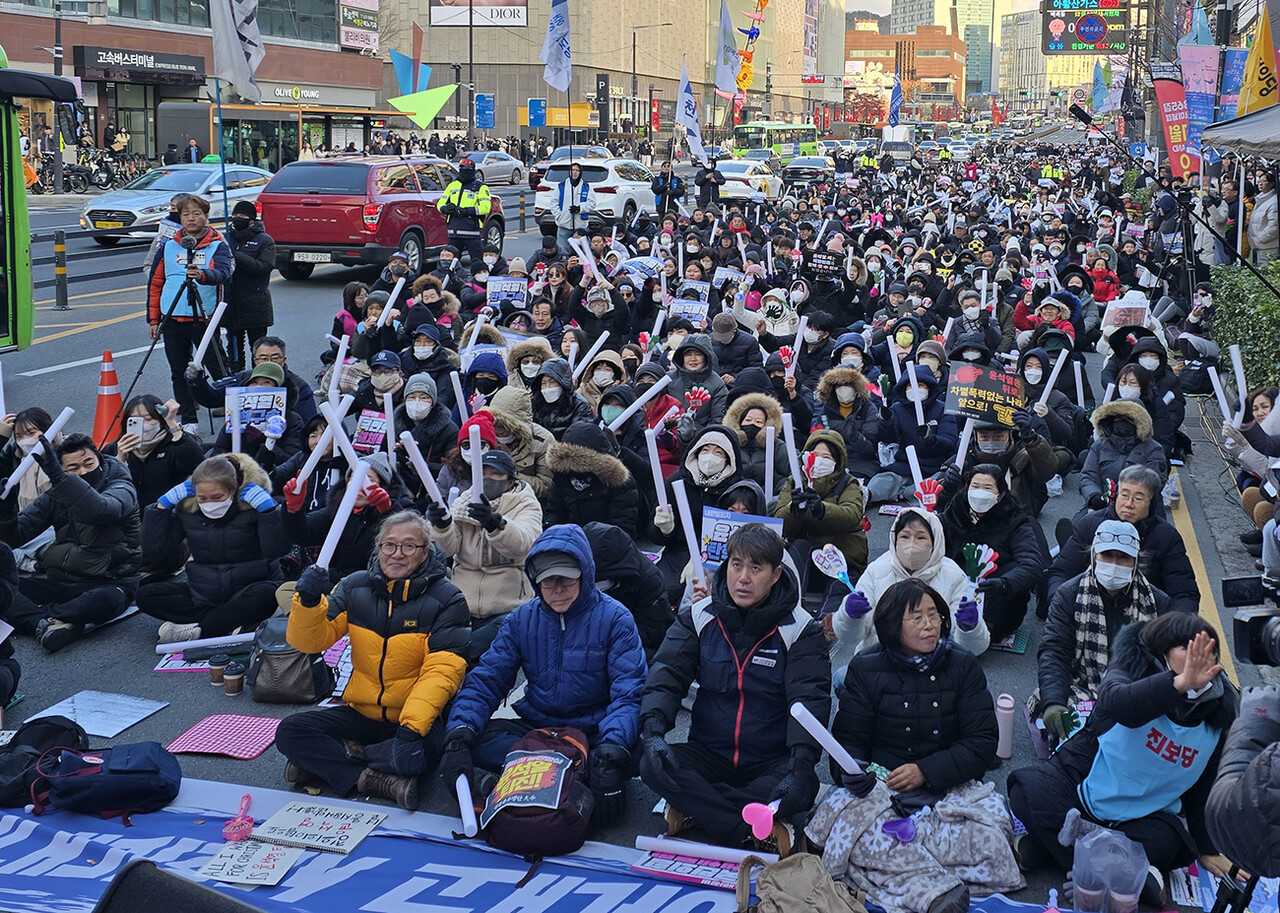 영하의 날씨 속 대통령 탄핵 위해 추위 잊은 1000여 명의 시민들