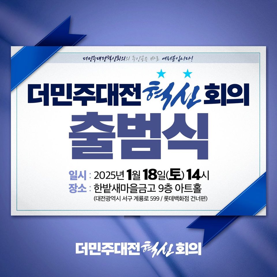 출범식에는 더민주전국혁신회의 상임공동대표를 맡고 있는 허태정 전 대전시장을 포함한 전국 지도부, 지역 국회의원인 박정현 시당위원장(대덕)과 장철민(동구), 박용갑(중구), 장종태(서구갑), 박범계(서구을), 조승래(유성갑), 황정아(유성을) 의원, 현역 구청장인 정용래 유성구청장과 김제선 중구청장 등이 참여할 예정이다.