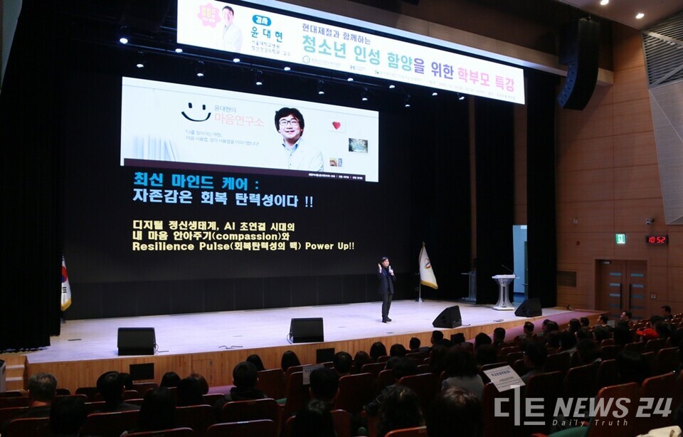 강연을 맡은 윤대현 서울대병원 강남센터 정신건강의학과 교수는 여러 방송과 강연에서 활발한 활동을 이어가고 있는 정신건강 심리 전문가로, 이번 특강에서 청소년기의 뇌 발달 특성, 가정 내 공감 대화법, 스트레스·번아웃 관리, 일상에서 실천 가능한 인성 교육 등을 구체적인 사례와 함께 전달해 참석자들의 공감을 이끌었다.